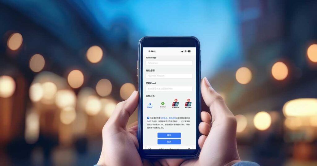 The link then leads to a bilingual payment page, including your logo and up to three customisable reference fields.